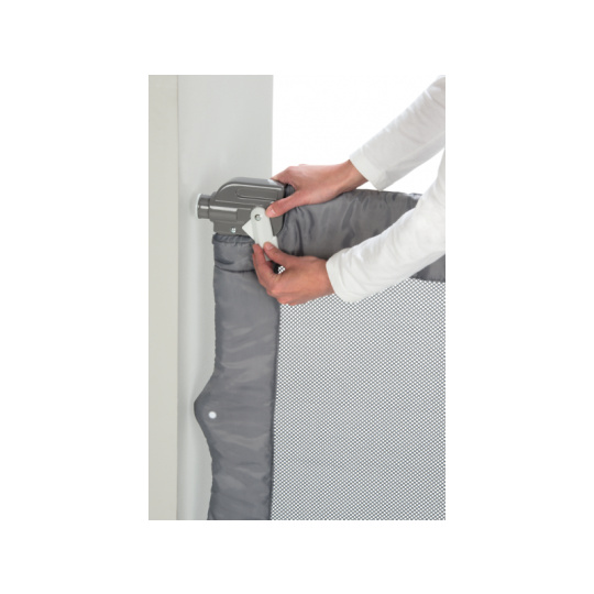 Safety 1st Travel Safety je přenosná zábrana, která je ideální pro cestování nebo občasné použití. Zábranu snadno instalujete do dveří či prostoru mezi stěnami o rozměrech od 71 do 93 cm. Snadno ji složíte do kompaktního tvaru a uložíte do tašky, která je součástí výrobku.  Jednoduchá instalace bez vrtání Instalaci umožňují 4 tlakové šrouby Snadné a rychlé použití Pro otvory 71 – 93 cm Výška zábrany 68 cm Materiál: hliník a 100% polyester
