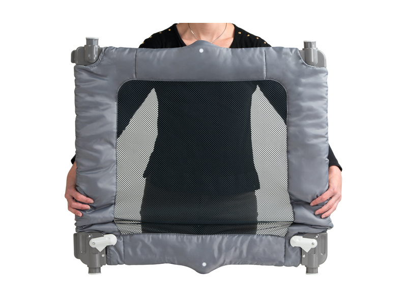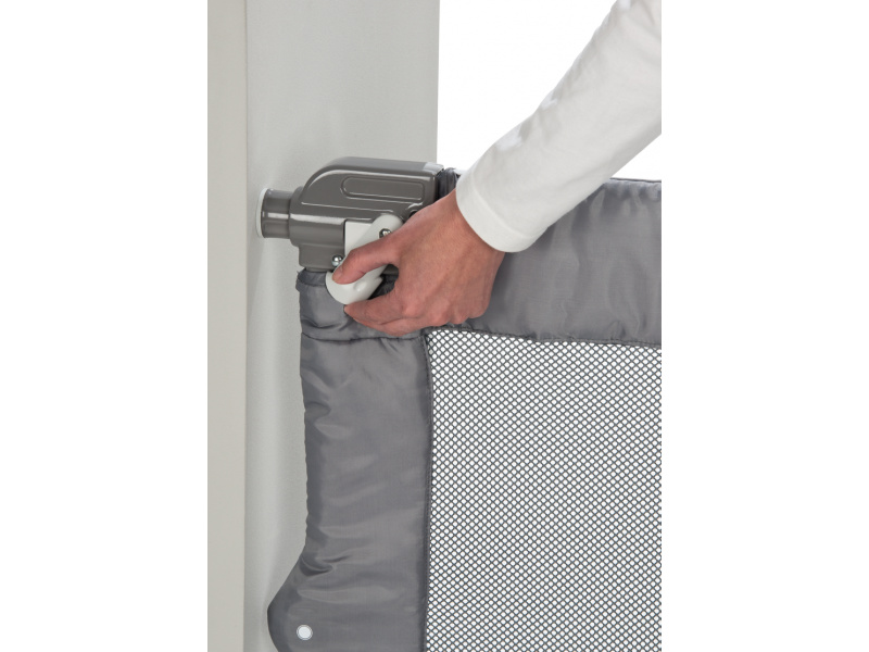 Safety 1st Travel Safety je přenosná zábrana, která je ideální pro cestování nebo občasné použití. Zábranu snadno instalujete do dveří či prostoru mezi stěnami o rozměrech od 71 do 93 cm. Snadno ji složíte do kompaktního tvaru a uložíte do tašky, která je součástí výrobku. Jednoduchá instalace bez vrtání Instalaci umožňují 4 tlakové šrouby Snadné a rychlé použití Pro otvory 71 – 93 cm Výška zábrany 68 cm Materiál: hliník a 100% polyester