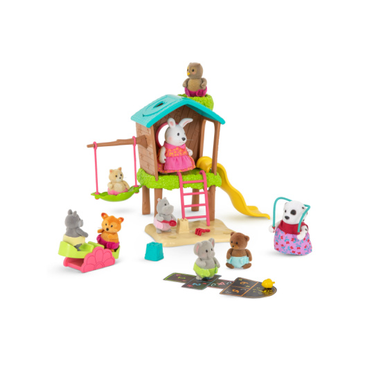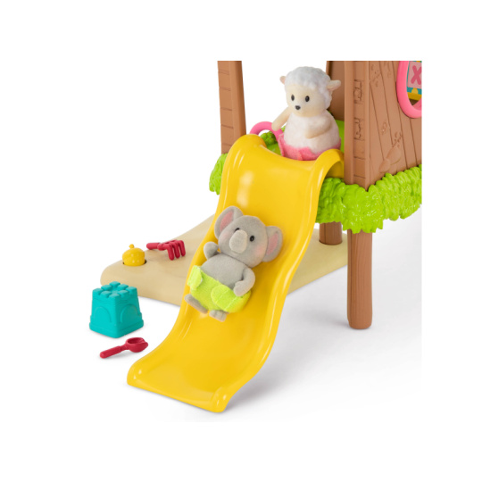 Prolézačka pro děti zvířátek Li'l Woodzeez nabízí vše pro zábavné odpoledne na zahradě - klouzačku, houpačky, žebřík, pískoviště i skákacího panáka. Samostatně prodávané postavičky zvířátek Li'l Woodzeez jsou vyrobené z měkkého příjemného materiálu a mají pohyblivé ruce, nohy i hlavy pro zábavnou předstíranou hru. Součástí samostatně prodávané nabídky doplňků Li'l Woodzeez jsou domečky, obchody i dopravní prostředky. Všechny postavičky a doplňky Li'l Woodzeez jsou navzájem kompatabilní a umožní vám vytvořit originální městečko pro nekonečnou hru rozvíjející fantazii a kreativitu vašeho dítěte. Postavičky zvířátek Li'l Woodzeez nejsou součástí balení. Vhodné pro děti od 3 let.