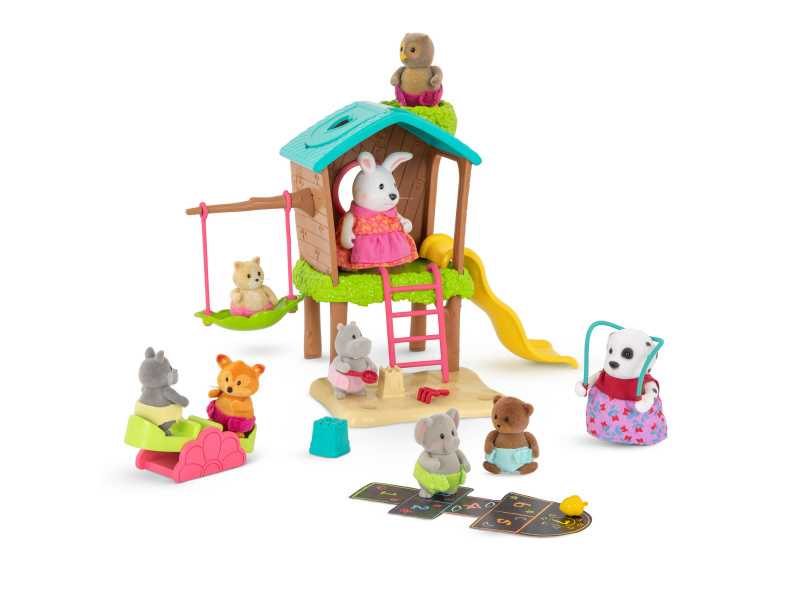 Prolézačka pro děti zvířátek Li'l Woodzeez nabízí vše pro zábavné odpoledne na zahradě - klouzačku, houpačky, žebřík, pískoviště i skákacího panáka. Samostatně prodávané postavičky zvířátek Li'l Woodzeez jsou vyrobené z měkkého příjemného materiálu a mají pohyblivé ruce, nohy i hlavy pro zábavnou předstíranou hru. Součástí samostatně prodávané nabídky doplňků Li'l Woodzeez jsou domečky, obchody i dopravní prostředky. Všechny postavičky a doplňky Li'l Woodzeez jsou navzájem kompatabilní a umožní vám vytvořit originální městečko pro nekonečnou hru rozvíjející fantazii a kreativitu vašeho dítěte. Postavičky zvířátek Li'l Woodzeez nejsou součástí balení. Vhodné pro děti od 3 let.