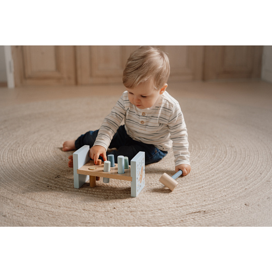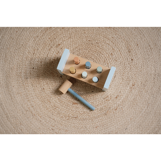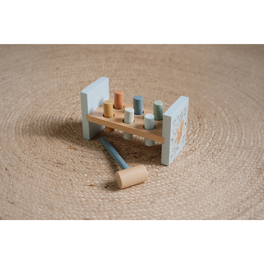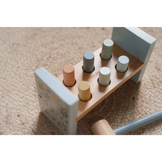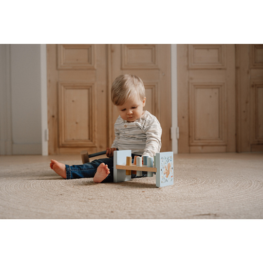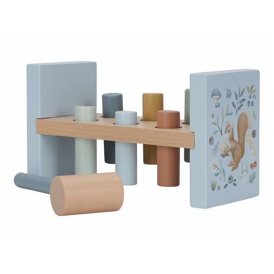 Klep sem, klep tam! Trefí vaše dítě všechny kolíčky? Pomocí kladiva je potřeba zatlouct 6 barevných kolíků do dřevěného stojanu. Až se to podaří, stačí stojan otočit a začít znovu! Můžete zatloukat pořád dokola! Hračka pomáhá rozvíjet jemnou motoriku vašeho dítěte. Zatloukačka je součástí designové kolekce hraček a doplňků Little Dutch Forest Friends inspirované životem v lese. Vyrobeno z dřeva certifikovaného FSC. Rozměry: 23 x 16 x 11,5 cm Vhodné pro děti od 12 měsíců.