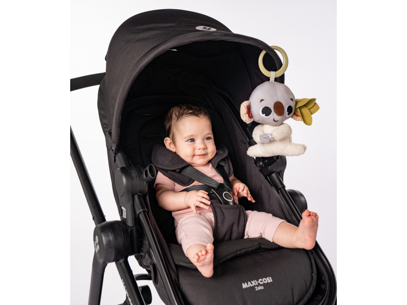 Měkká hračka v podobě usměvavé koaly při pohybu jemně chrastí. Různorodé textury na hračce lákají dítě ke zkoumání. Kroužek umožňuje snadné zavěšení na autosedačku, kočárek či potýlku. Rozměry: 20 x 19 x 7 cm Vhodné pro děti od narození.