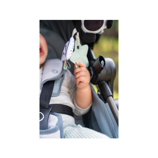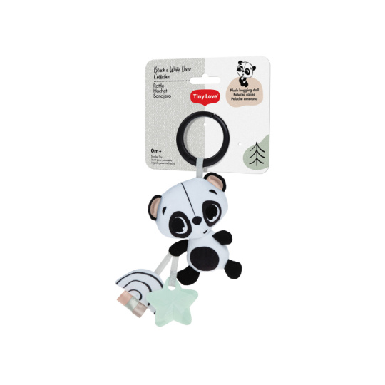 Měkká hračka v podobě roztomilé pandy při pohybu jemně chrastí. Různorodé textury na hračce lákají dítě ke zkoumání. Kroužek umožňuje snadné zavěšení na autosedačku, kočárek či potýlku. Rozměry: 15 x 12 x 7,5 cm Vhodné pro děti od narození.
