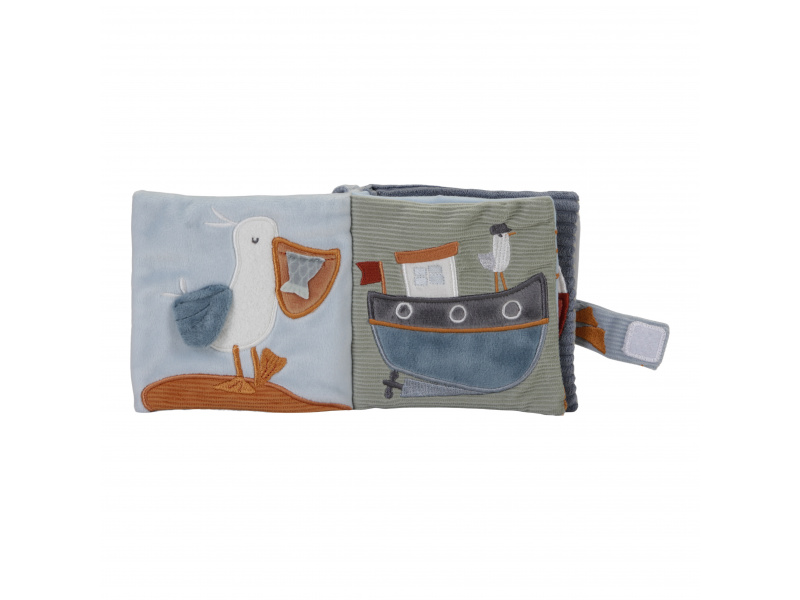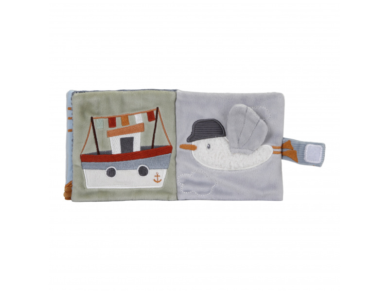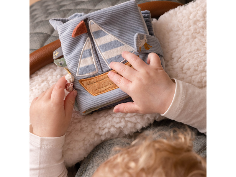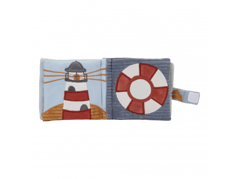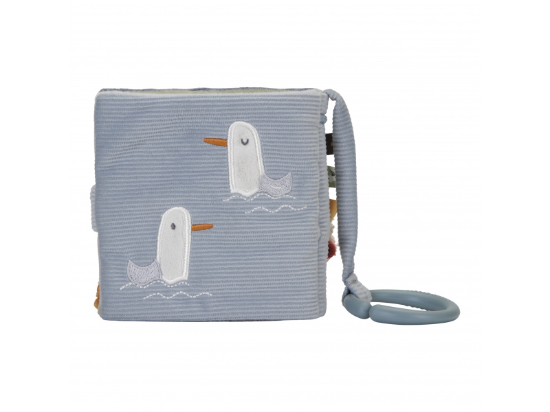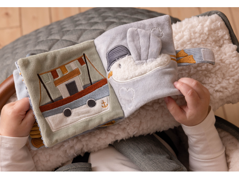 Měkká textilní knížka s krásnými motivy ze života na moři upoutá pozornost vašeho dítěte množstvím aktivit, ukrytých na jednotlivých stránkách. Ke zkoumání a prohlížení lákají šusticí i pískací stránky, různorodé textury nebo např. kormidlo s bezpečným zrcátkem. Knížka pomáhá rozvíjet jednotlivé smysly dítěte i koordinaci ruka / oko. Knížku můžete snadno zavěsit na kočárek, autosedačku či postýlku. Knížka je součástí designové kolekce hraček Little Dutch Námořnický záliv. Rozměry: 12 x 12 x 6 cm Vhodné od narození.