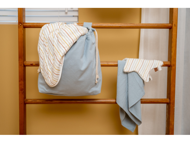 Praktická závěsná taška na hrací ohrádku či postýlku je vhodná pro snadné a rychlé ukládání hraček. Taška je součástí designové kolekce textilu Little Dutch Newborn Naturals Pure Soft Blue. Složení: 82% bavlna / 18% polyester, podšívka 100% bavlna Rozměry: 40 x 50 x 15 cm