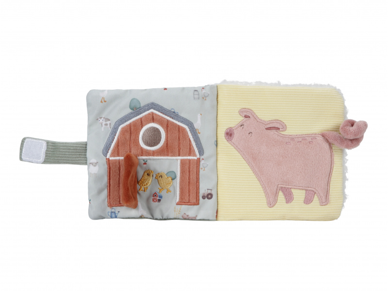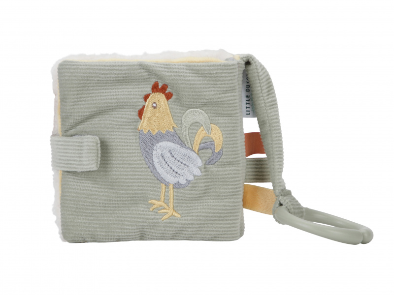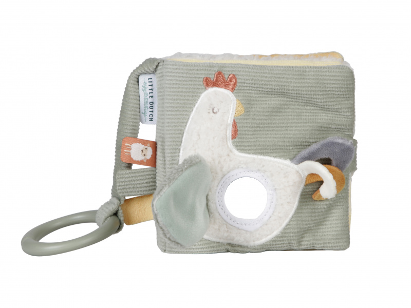Měkká textilní knížka s krásnými motivy ze života na farmě upoutá pozornost vašeho dítěte množstvím aktivit, ukrytých na jednotlivých stránkách. Ke zkoumání a prohlížení lákají šusticí i pískací stránky, různorodé textury nebo např. bezpečné zrcátko. Knížka pomáhá rozvíjet jednotlivé smysly dítěte i koordinaci ruka / oko. Knížku můžete snadno zavěsit na kočárek, autosedačku či postýlku. Knížka je součástí designové kolekce hraček Little Dutch Farma. Rozměry: 11 x 11 x 3 cm Vhodné od narození.
