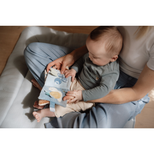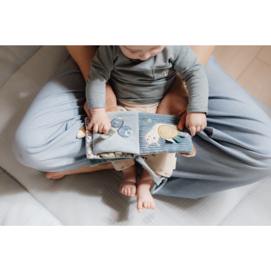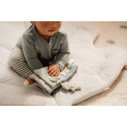 Měkká textilní knížka s krásnými motivy ze života v lese upoutá pozornost vašeho dítěte množstvím aktivit, ukrytých na jednotlivých stránkách. Ke zkoumání a prohlížení lákají šusticí i pískací stránky, různorodé textury nebo např. bezpečné zrcátko. Knížka pomáhá rozvíjet jednotlivé smysly dítěte i koordinaci ruka / oko. Knížku můžete snadno zavěsit na kočárek, autosedačku či postýlku. Knížka je součástí designové kolekce hraček a doplňků Little Dutch Forest Friends inspirované životem v lese. Rozměry: 11 x 11 x 3 cm Vhodné od narození.