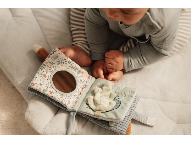 Měkká textilní knížka s krásnými motivy ze života v lese upoutá pozornost vašeho dítěte množstvím aktivit, ukrytých na jednotlivých stránkách. Ke zkoumání a prohlížení lákají šusticí i pískací stránky, různorodé textury nebo např. bezpečné zrcátko. Knížka pomáhá rozvíjet jednotlivé smysly dítěte i koordinaci ruka / oko. Knížku můžete snadno zavěsit na kočárek, autosedačku či postýlku. Knížka je součástí designové kolekce hraček a doplňků Little Dutch Forest Friends inspirované životem v lese. Rozměry: 11 x 11 x 3 cm Vhodné od narození.