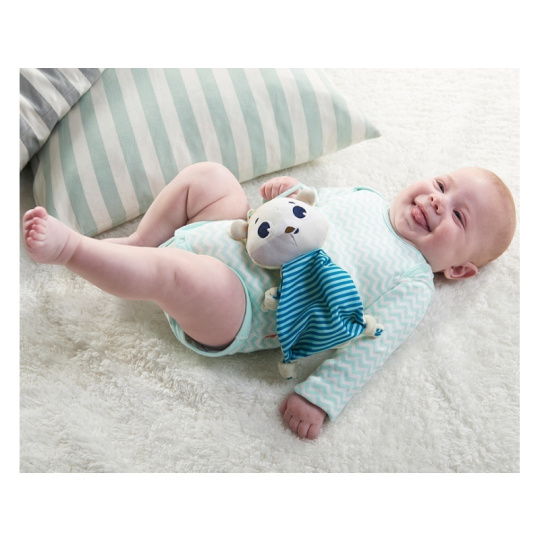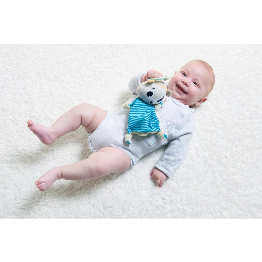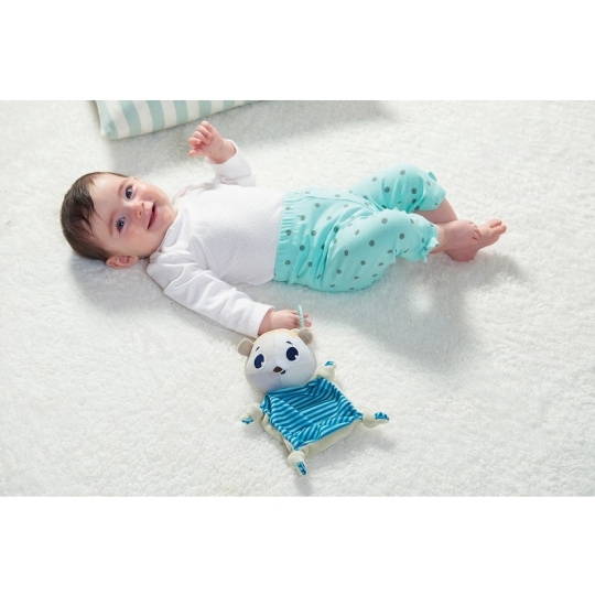 Muchláček z jemného, měkkého materiálu v podobě ledního medvěda Eleanor zpříjemní vašemu dítěti usínání doma i na cestách. Díky kroužku jej snadno zavěsíte na kočárek či do autosedačky. Rozměry: 24 x 15,5 x 5 cm Vhodné pro děti od narození.