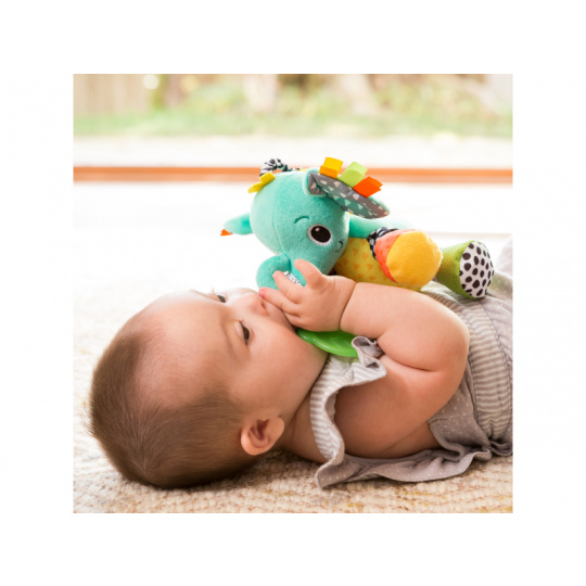 Různobarevný slon upoutá pozornost dítěte svými výraznými barvami i chrastěním při pohybu. Různorodé textury lákají dítě ke zkoumání. Kousátko pomáhá dítěti při prořezávání prvních zoubků. Hračku je možné zavěsit na autosedačku, kočárek či hrazdu na hrací dece. Vhodné pro děti od narození.