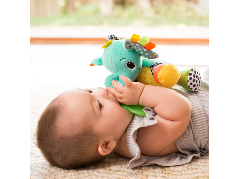 Různobarevný slon upoutá pozornost dítěte svými výraznými barvami i chrastěním při pohybu. Různorodé textury lákají dítě ke zkoumání. Kousátko pomáhá dítěti při prořezávání prvních zoubků. Hračku je možné zavěsit na autosedačku, kočárek či hrazdu na hrací dece. Vhodné pro děti od narození.