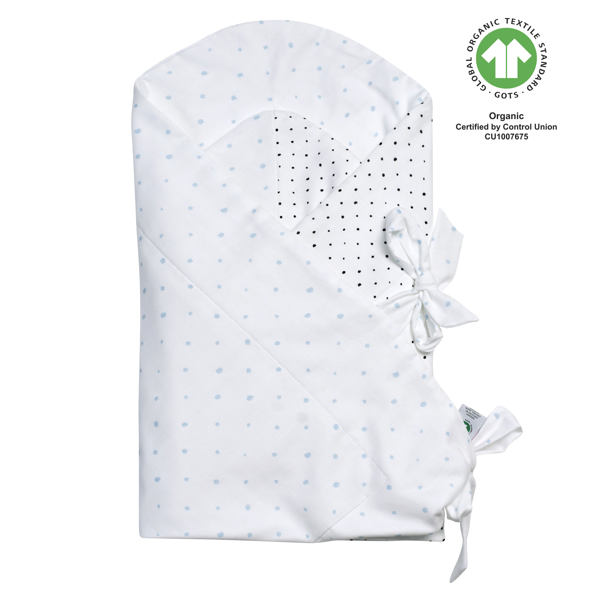 MOTHERHOOD Zavinovačka bavlněná BIO Blue and Black Dots 85x85 cm