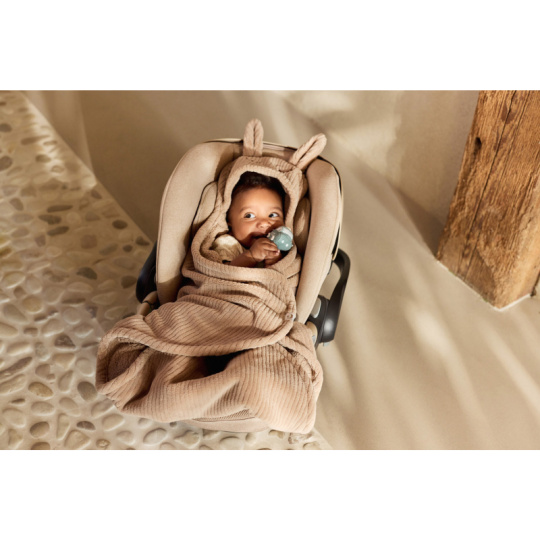 Zavinovačka z měkké žebrované textilie s plyšovou podšívkou umožňuje snadno a rychle miminko zabalit a zajistit mu pocit bezpečí, tepla a pohodlí. Kapuce zajistí teplo na hlavičku i při spaní dítěte v chladnějším prostředí. Zavinovačka se zapíná s pomocí suchých zipů. Zavinovačka je vhodná pro použití v košíku, postýlce i kočárku. Díky otvorům pro protažení pásů je vhodná i pro použití v autosedačce kategorie 0m+ (0-13 kg) s 3-bodovými nebo 5-bodovými pásy. Rozměry: 100 x 105 cm Složení: 100% polyester Vhodné pro děti od narození.