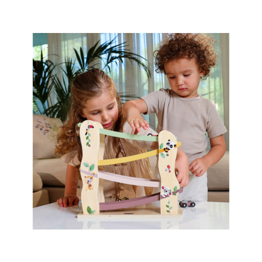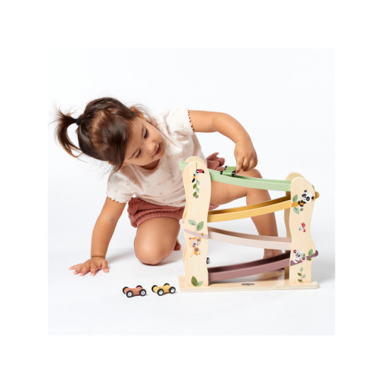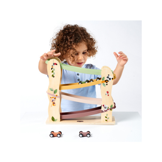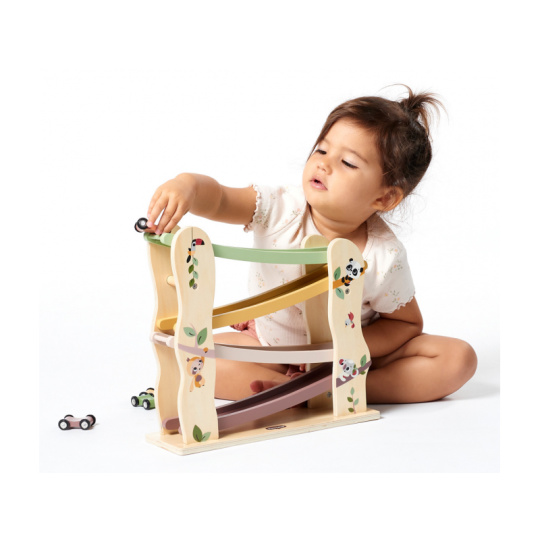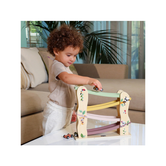 Závodní dráha v dřevěném provedení s krásným potiskem se čtyřmi dřevěnými autíčky zajistí vašemu dítěti spoustu zábavy! Hračka rozvíjí motorické dovednosti, koordinaci i jednotlivé smysly dítěte. Rozměry: 10 x 28,5 x 30 cm Vhodné pro děti od 24 měsíců.