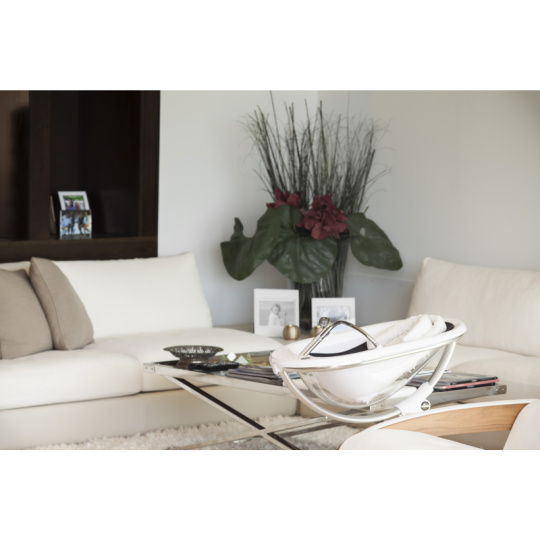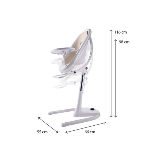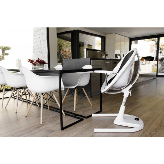 Stylová židlička Mima Moon je to pravé pro milovníky soudobého špičkového designu. Svým řešením 3v1 umožní dítěti být již od narození až do školního věku součástí rodinného stolování. Díky různým možnostem náklonu a volitelnému vkládacímu polstrování je vhodná pro miminka od narození. S odnímatelným pultem a opěrkou nohou je použitelná jako židlička na krmení pro batolata od 6 měsíců. Vyjmutím vnitřního sedáku židličku snadno přeměníte v židli pro větší děti, které ji mohou používat samostatně u stolu. Židlička je velmi jednoduše výškově nastavitelná a ve své maximální výšce se hodí i ke kuchyňským barovým pultům. Pevná a stabilní konstrukce je zárukou bezpečí pro dítě. Kolečka Easy-Glide usnadňují přesunování židličky v interiéru. Součástí balení je sedací podložka v černé barvě. Samostatně prodávané doplňky vám umožní přizpůsobit židličku věku vašeho dítěte i vašim barevným preferencím: vložka pro miminko s opěrkou hlavy určená pro děti od narození sedací podložka s pásy v různých barvách pro batolata podsedák pro malé děti sada sedacích polštářků v různých barvách pro větší děti Rozměry a hmotnost: Hmotnost židličky: 10,8 kg Nosnost židličky: 45 kg Základna: 55 × 66 cm Max. výška k hornímu okraji židličky: 119,5 cm Výška pultu: od 71 do 89 cm