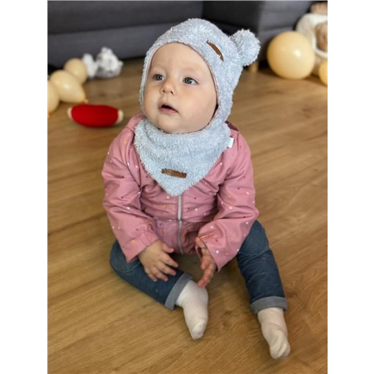 Zimní kojenecká čepička s šátkem na krk New Baby Teddy bear šedo růžová