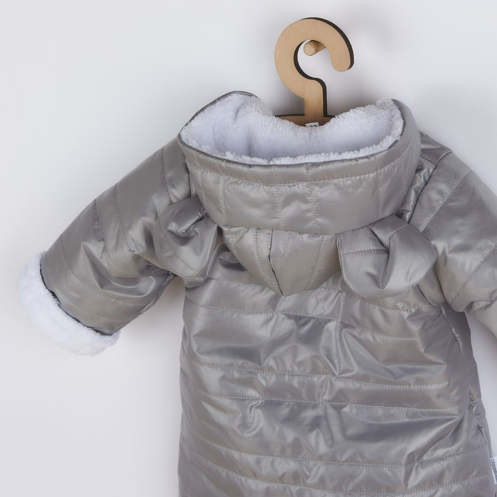Zimní kojenecká kombinéza s kapucí a oušky New Baby Pumi grey