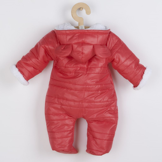 Zimní kojenecká kombinéza s kapucí a oušky New Baby Pumi red raspberry
