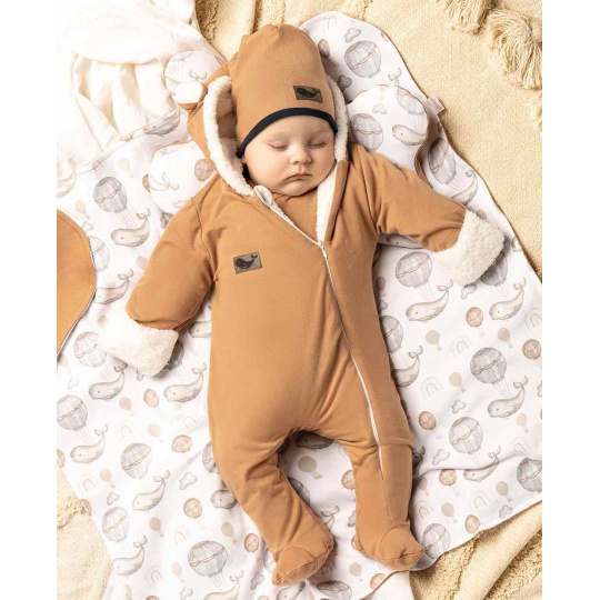 Roztomilý stylový a praktický zimní overálek s kapucí a oušky Nicol Miki pro miminka. Každé miminko v něm bude naprosto úchvatné a v pohodlí teploučka. Je vyrobený z kvalitní látky, která je velmi příjemná na dotek. Materiál si po dlouhou dobu zachovává svůj původní tvar. Overálek je podšitý z hřejivého materiálu tzv. Wellsoftu. Rukávky lze ohrnout a tím vynikne hřejivá podšívka. Boční zapínání po celé délce na zip usnadní oblékání. Složení: vrchní materiál: 95% bavlna, 5% elastan, podšívka 90% polyester, 10% bavlna- typ welsoft. Ideální pro miminka na zimu a podzim.