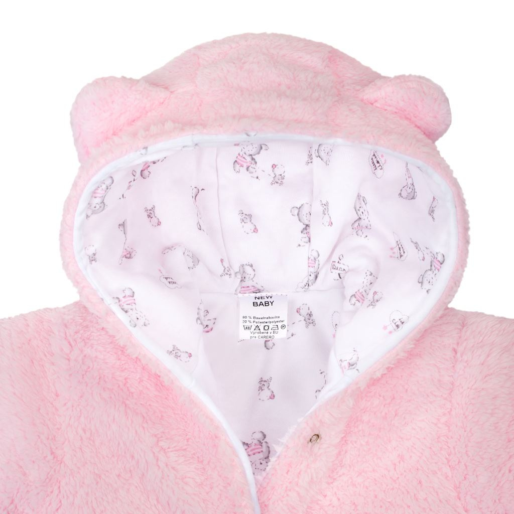 Praktická zimní kojenecká kombinézka s kapuckou New Baby Nice Bear pro Vaše miminko. Zimní kombinézka je vyrobena z dvou vrstev kvalitního materiálů - vrchního hrubšího, hřejivého fleecového materiálu a spodní bavlněné podšívky. Kombinézku zdobí obrázek medvídka. Má praktickou kapuci s roztomilými oušky a teploučké rukavičky na šňúrce. Zapínání na cvočky po celé délce a mezi nožičkami. Složení: vrchní vrstva 80% bavlna, 20% polyester, podšívka: 100% bavlna, výplň: antialergické vlákno. Rozměry: obvod kolem hrudníku cca 61 cm, délka růkávu cca 24 cm, celková délka cca 60 cm, délka rukaviček cca 12 cm.