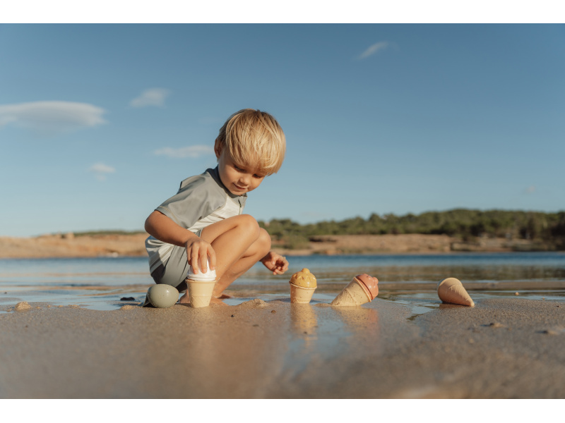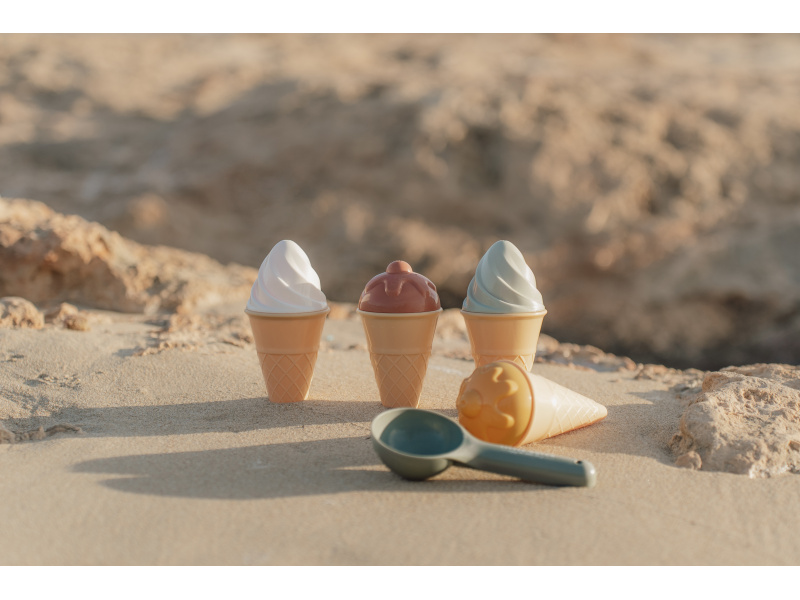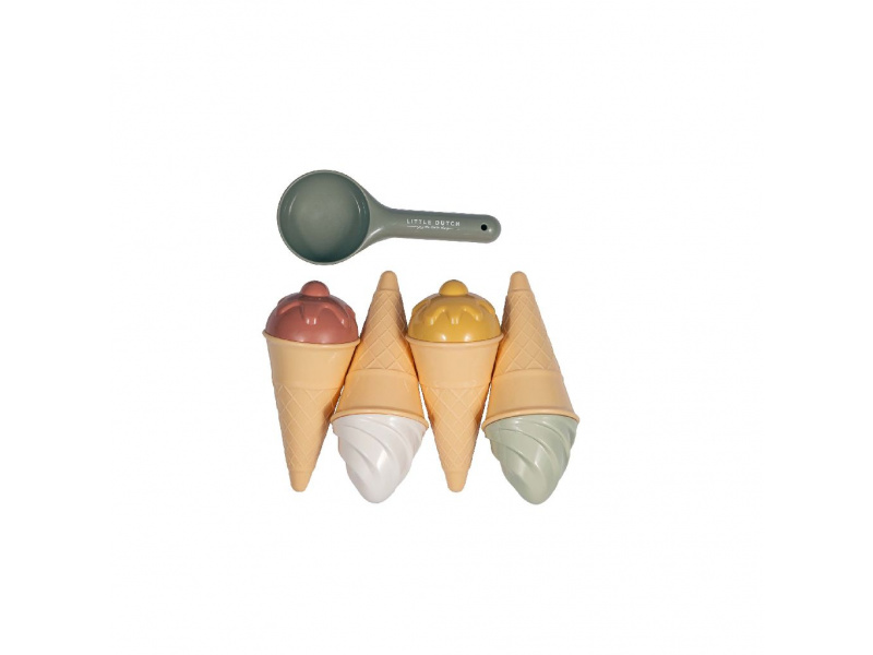 Zmrzlina patří k létu a s touto roztomilou sadou si ji vaše děti vyrobí i z písku. Sadu čtyři kornouty, naběračka na zmrzlinu a čtyři formičky ve tvaru zmrzliny. Sada je součástí designové kolekce Little Dutch Ocean Dreams. Vhodné pro děti od 18 měsíců.