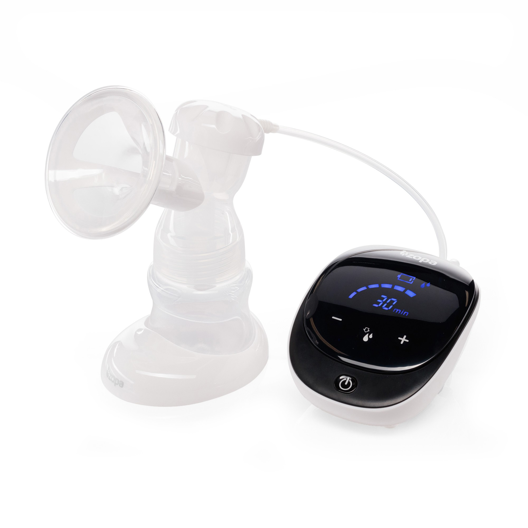 LED display signalizuje aktuální nastavení v reálném čase. Motorovou jednotku lze napájet pomocí kabelu s přípojkou micro USB nebo bateriemi. Membránová konstrukce odsávačky zabraňuje míchání vzduchu a kapaliny, brání zpětnému toku mléka a jeho kontaminaci.