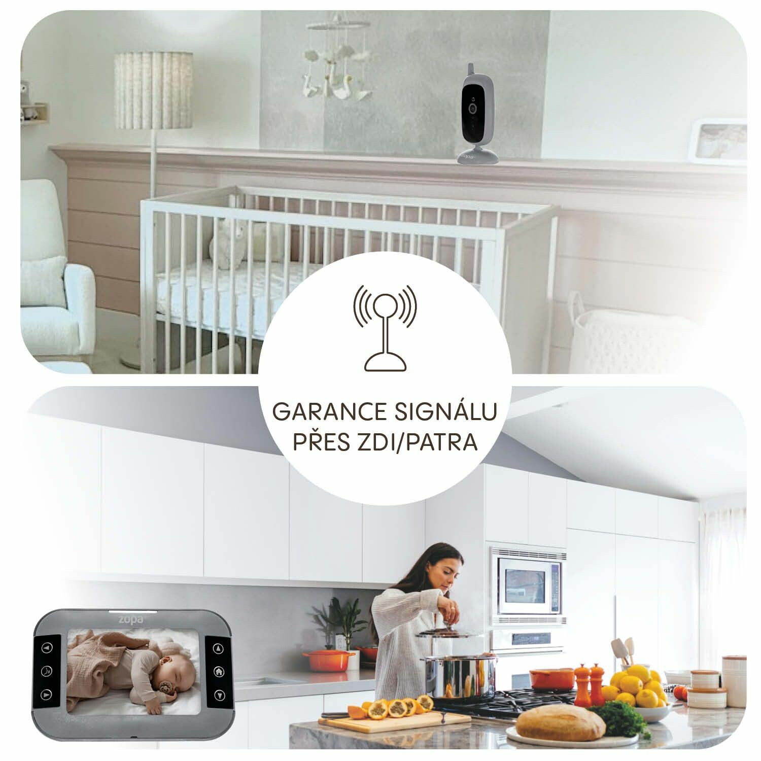 • Upozorní na slabou baterii i ztrátu signálu