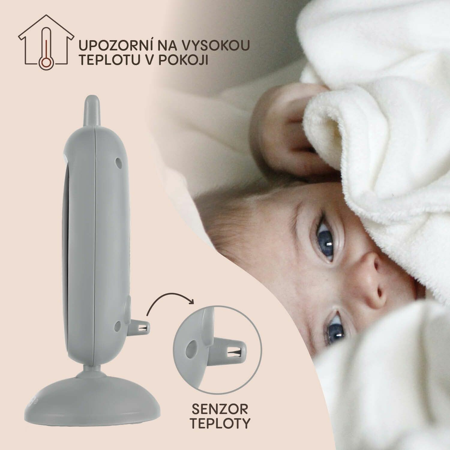 • Zobrazení teploty v místnosti a upozornění na příliš vysokou teplotu