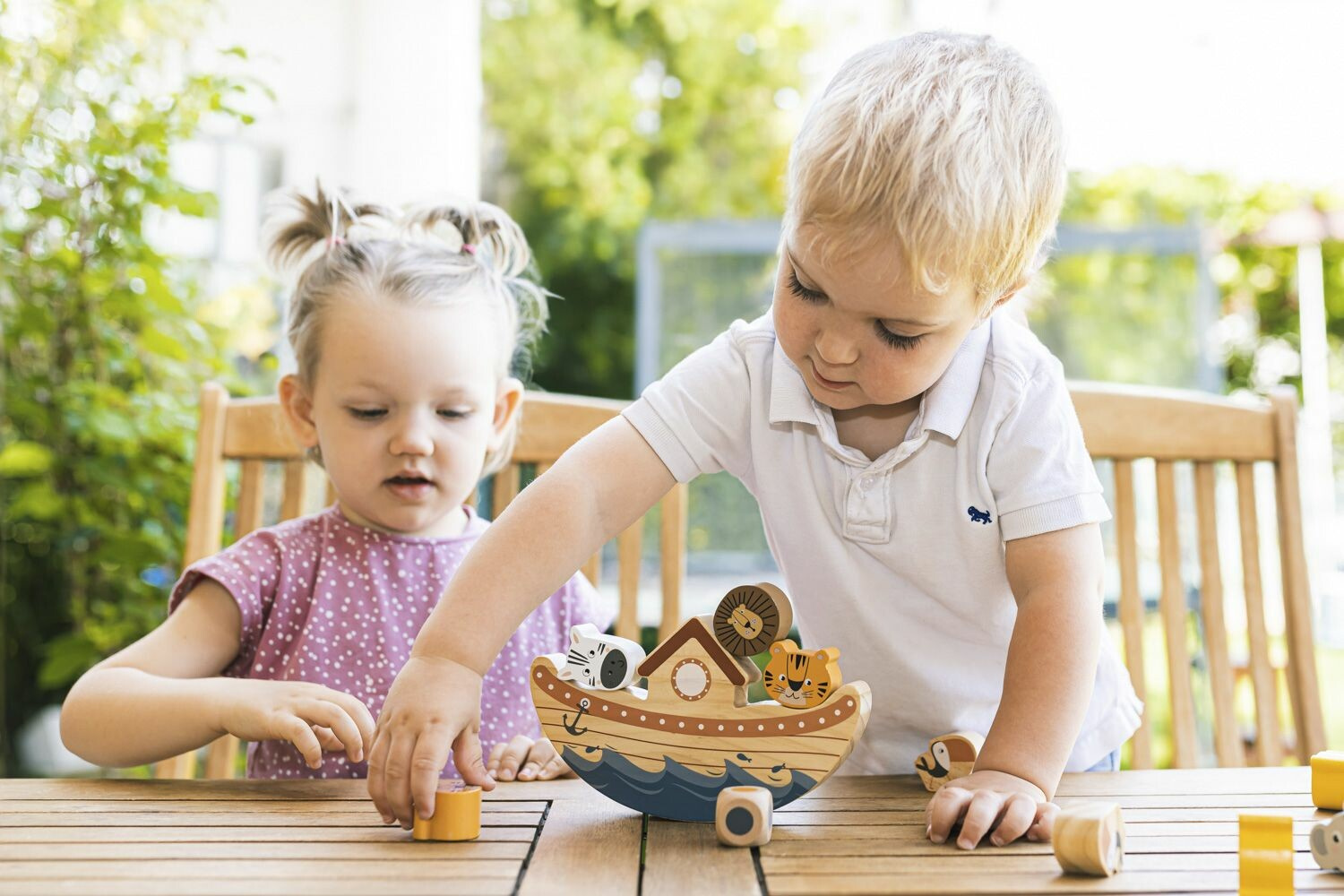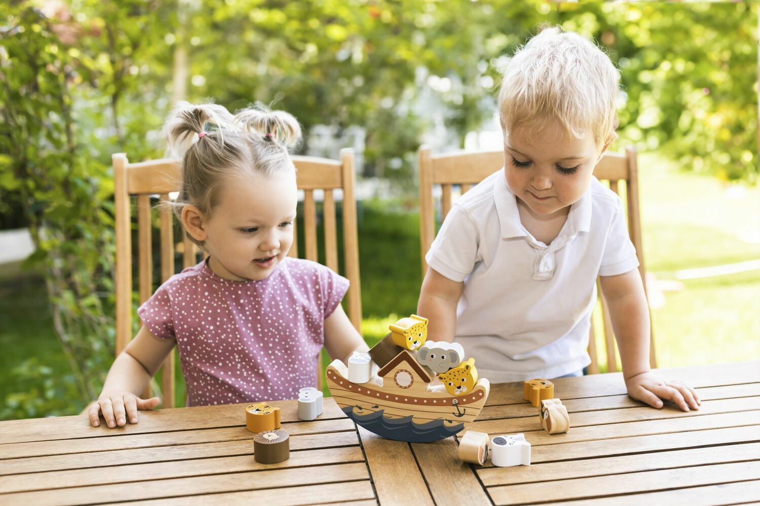 Nechte děti, aby poznaly, jak funguje gravitace a naučily se prostorového vnímání. Zábavnou formou se budou učit o tom, jak skládat předměty, tak aby držely balanc. Hra je vhodná i pro jednoho hráče. V případě, že jí hraje více hráčů prohrává ten, komu zvířátka z archy vypadnou jako prvnímu.