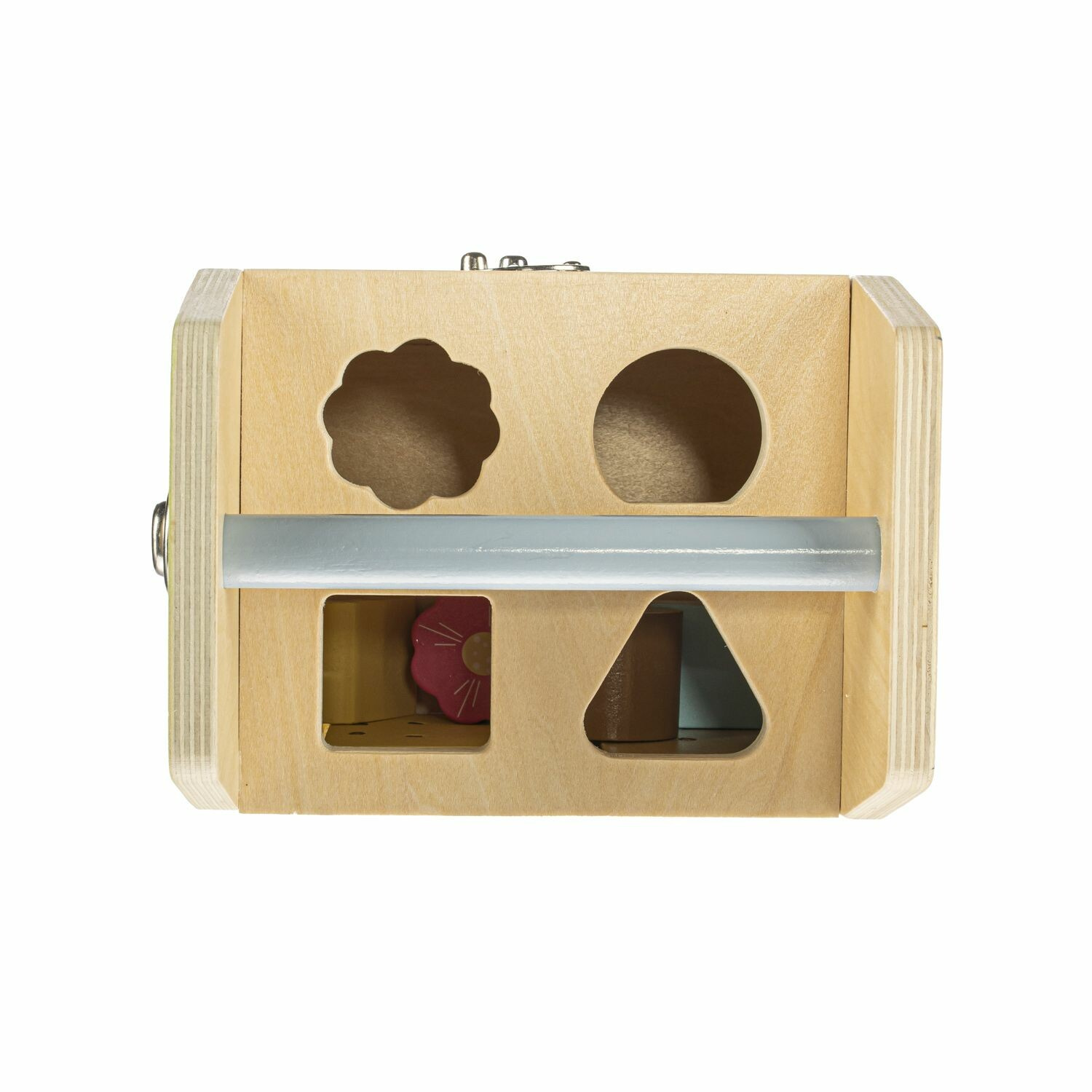 Díky dřevnému madlu můžete kostku snadno vzít s sebou na návštěvu nebo na výlet a tím dokonale zabavit svého malého dobrodruha.