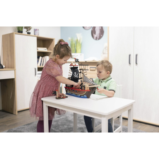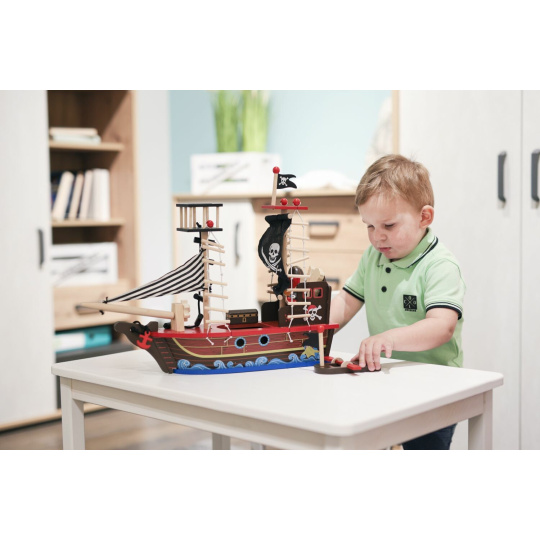 Pirátská loď podporuje rozvoj jemné motoriky, fantazii a představivost dítěte. Díky koordinaci ruka-oko, kterou při hře vyžaduje, se posiluje jeho schopnost komunikace a sebevědomí. S touto lodí má dítě v balení vše potřebné pro dobrodružnou hru s piráty.