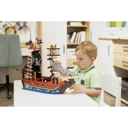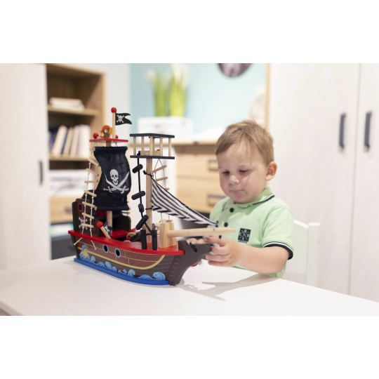 Dřevěná pirátská loď, která vypráví spoustu příběhu, a je tak zdrojem nekonečné zábavy se stane oblíbenou hračkou i vašeho malého piráta. Loď je ideálním prostředkem pro podporu rozvoje dítěte. S bezpečnými netoxickými barvami a krásnými detaily a zpracováním je vhodná pro děti od 3 let. Vyrobená z kvalitního dřeva, nabízí nejen zábavu, ale také možnost využití jako dekorace.