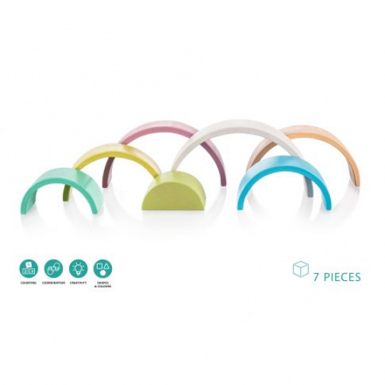 Učení by měla být zábava. Roztomilá hračka ve tvaru a barvách duhy je skvělým pomocníkem pro motorický rozvoj, představivost a kreativitu dětí.