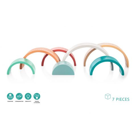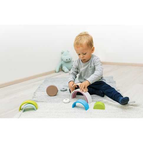 Učení by měla být zábava. Roztomilá hračka ve tvaru a barvách duhy je skvělým pomocníkem pro motorický rozvoj, představivost a kreativitu dětí.