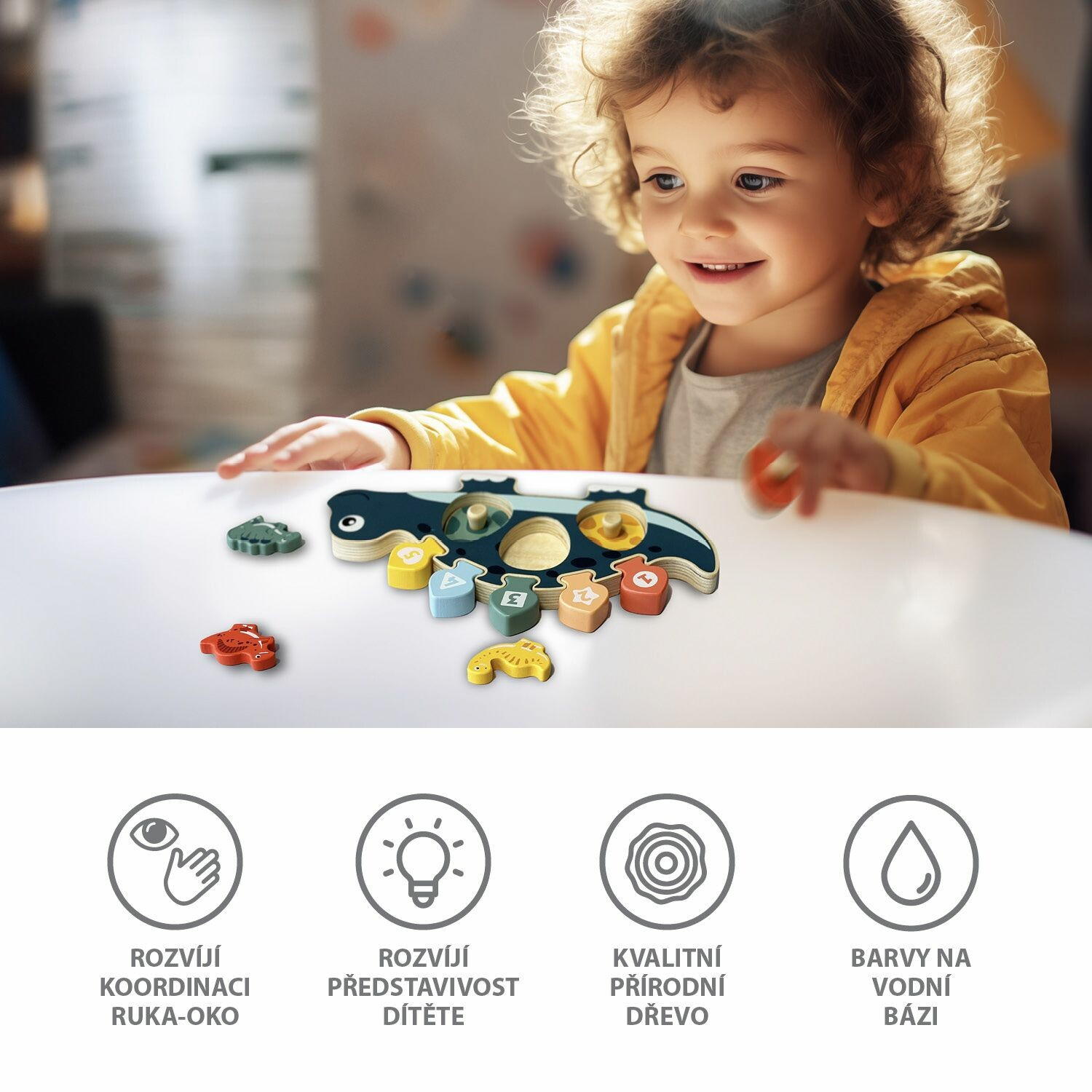 Díky odolným dřevěným dílkům jsou tyto puzzle vyrobeny tak, aby vydržely nekonečné hodiny zábavy, a s použitím netoxických barev jsou zcela bezpečné pro děti. Puzzle také pomáhají rozvíjet jemnou motoriku a koordinaci ruka-oko, představivost, učí tvary, barvy a počítat, a to vše prostřednictvím zábavné a vzdělávací hry.