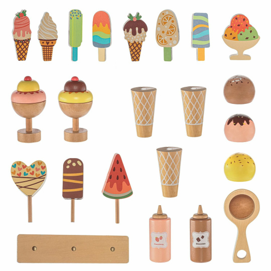 Naše dřevěné zmrzlinářství je skvělým způsobem, jak rozvíjet fantazii a kreativitu dětí, a zároveň je neodolatelně bude bavit, vy si tak můžete dopřát chvilku pro sebe. Připravte se na bezpočet hodin zábavy a chutných dobrodružství se svými malými zmrzlináři!