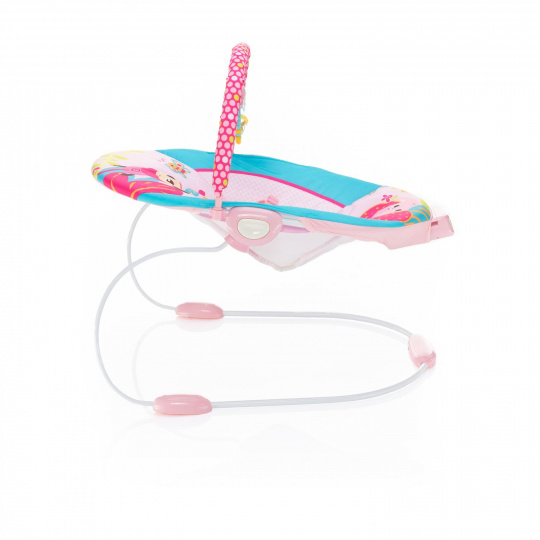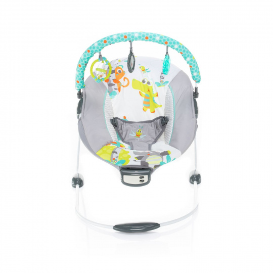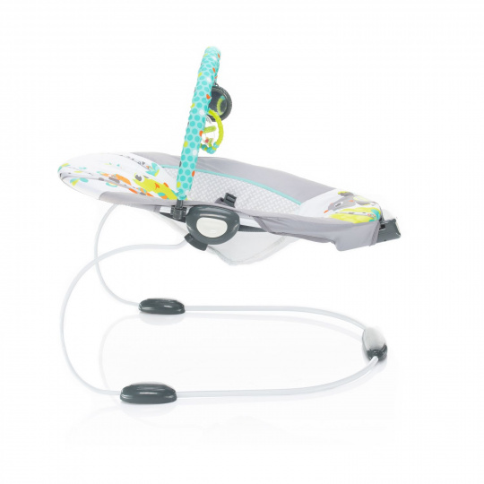 Lehačka Happy nabídne vašemu mrňouskovi spoustu nových podnětů, proto si ji určitě oblíbí. Jejím nosným prvkem je pružná konstrukce, kterou si děťátko svými pohyby samo „rozhoupe“. Zatímco 3bodový bezpečnostní pás a protiskluzové nožičky zajistí jeho bezpečnost. Pozornost dítěte v lehačce upoutá také líbivá hrazdička se 3 omyvatelnými hračkami, které rozvíjí dětské smysly a jemnou motoriku. 2stupňové polohování pak vašemu miláčkovi poskytne příjemné posezení a ten nejlepší rozhled.