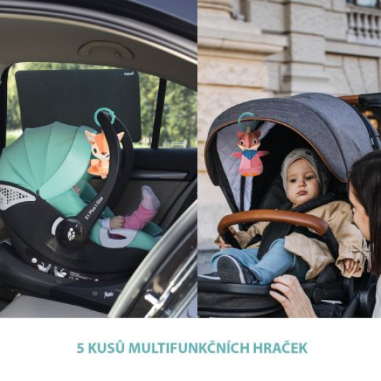 Hračky se dají z hrazdičky snadno odepnout a připnout na kočárek, autosedačku nebo tvarovaný podpůrný polštářek. Ten slouží jako opora při pasení koníčků. Starším dětem pomůže s nácvikem správné pozice pro lezení.