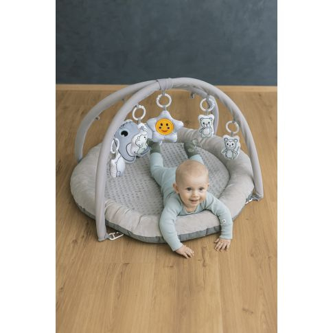 Heboučká hrací deka Comfort je ideální první hračkou pro vaše děťátko. Interaktivní plyšové hračky se štěrchátkem zábavnou formou motivují miminko k tréninku koordinace oko – ruka a později k úchopu. Hračky se dají jednoduše odepnout z hrazdičky a lze je použít na autosedačce nebo kočárku.