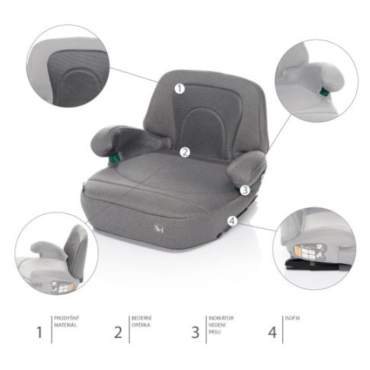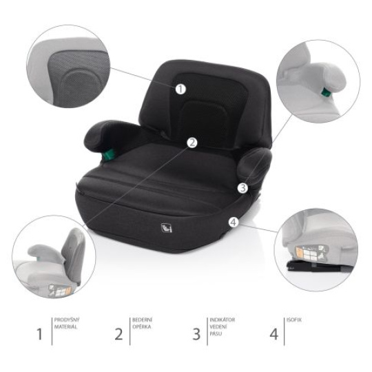 Podsedák iBooster byl testovaný v Evropě a splňuje nejnovější bezpečnostní normu i-Size. Do auta ho lze instalovat pomocí isofixu a bezpečnostního pásu vozidla nebo pouze pomocí bezpečnostních pásů vozidla. Indikátory rodičům ukážou, kudy je potřeba pás vést, aby perfektně chránil dítě.