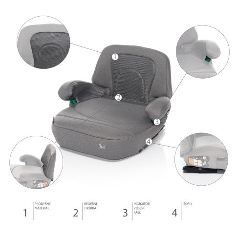 Bederní opěrka a opěrka na ruce se postarají o to, aby se dítě cítilo během cesty pohodlně. Celou autosedačku pokrývá měkké polstrování a potahy. Podsedák je určený pro děti od 125 centimetrů a lze ho používat až do 150 cm (12 let), dokdy je potřeba vozit dítě v autosedačce.