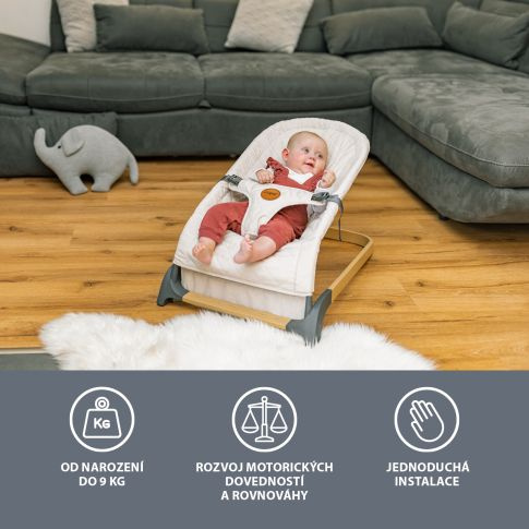 Díky pevné a zároveň pružné kovové konstrukci lehačka umožňuje houpání na základě vlastní váhy dítěte nebo dítě mohou houpat rodiče. Houpání je tak zcela přirozené. Miminko se rychle naučí, jak se v lehátku rozhoupat a rozvíjí tak motorické dovednosti a rovnováhu.