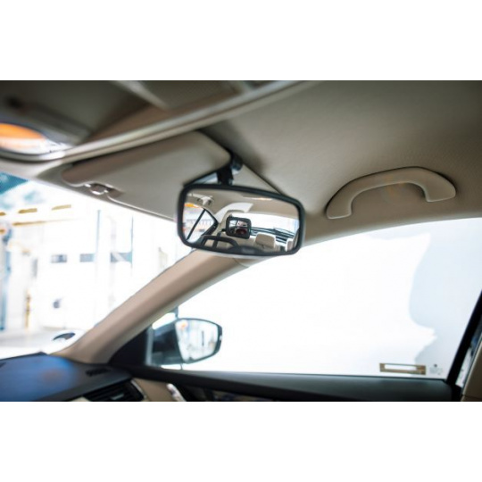 Abyste měli jako řidič přehled o všem, co se ve voze děje, jak se vzadu baví nebo odpočívají vaše děti, je tu malé zpětné zrcátko, které díky vypouklé konstrukci zásadně rozšiřuje váš zorný úhel. Zrcátko je otočné o 360°, takže si ho můžete nastavit naprosto podle svých potřeb. Lze ho umístit pomocí přísavky na čelní sklo nebo pomocí klipu na sluneční clonu před řidičem či spolujezdcem.