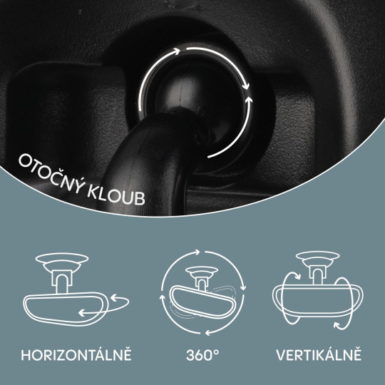 Široký zorný úhel, otočnost 360° a snadná instalace zaručují pohodlí a bezpečí na cestách.