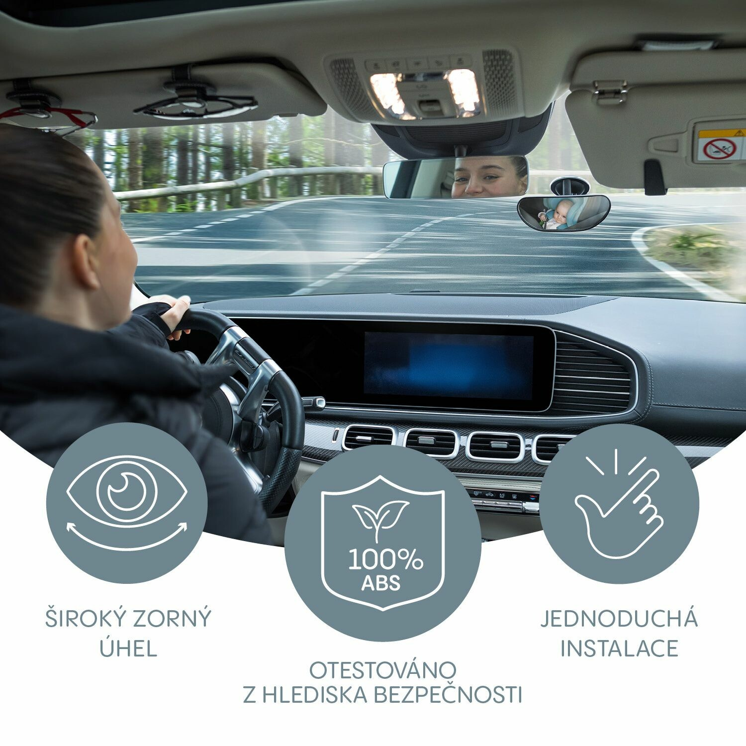 Široký zorný úhel, otočnost 360° a snadná instalace zaručují pohodlí a bezpečí na cestách.
