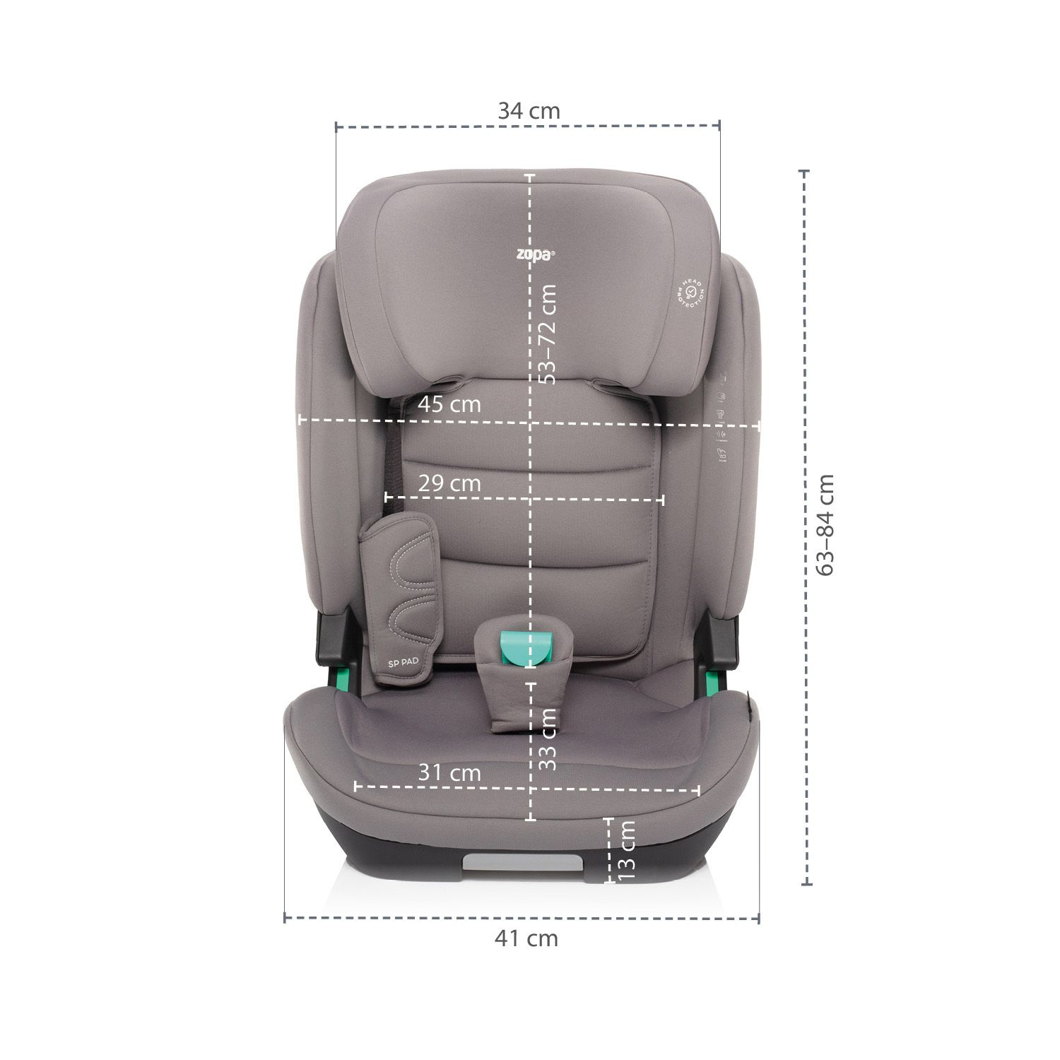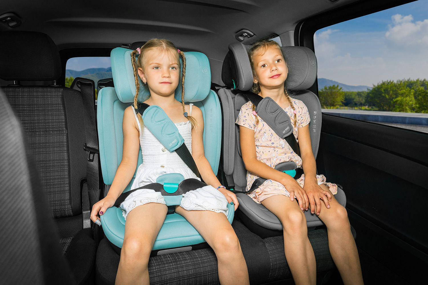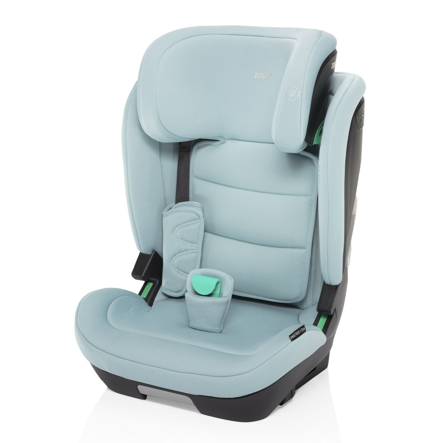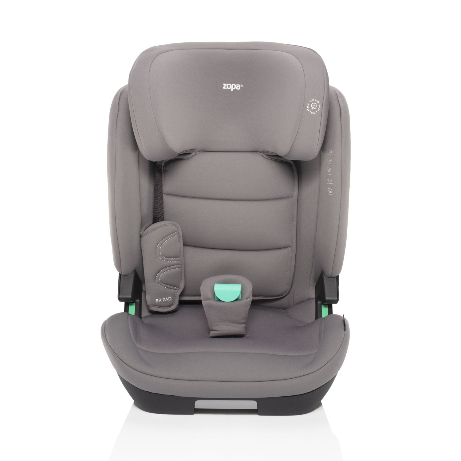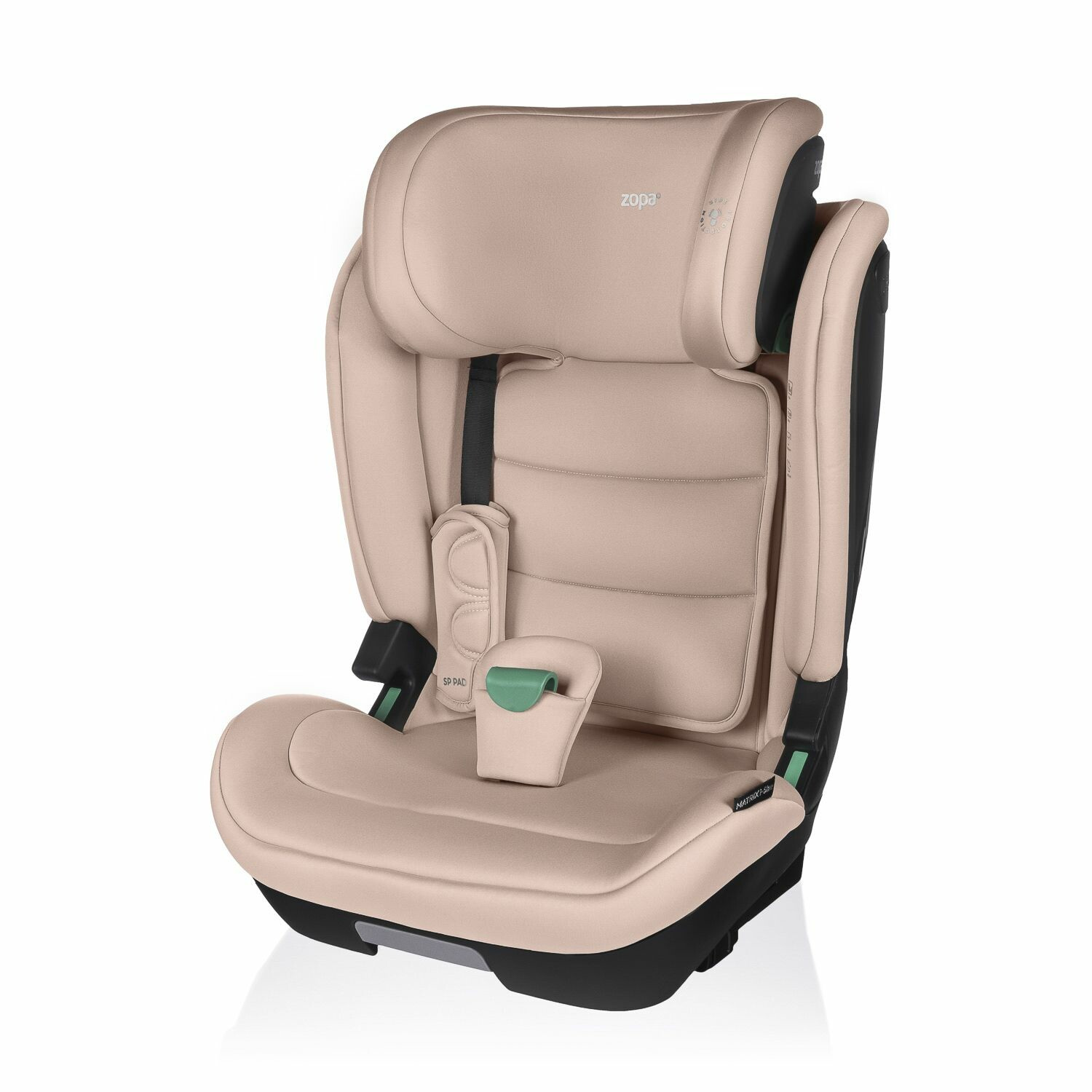 Polohování do 4 pozic, výškově nastavitelná opěrka hlavy, SIP ochrana bočního nárazu, bezpečnostní vycpávky SP PAD,
