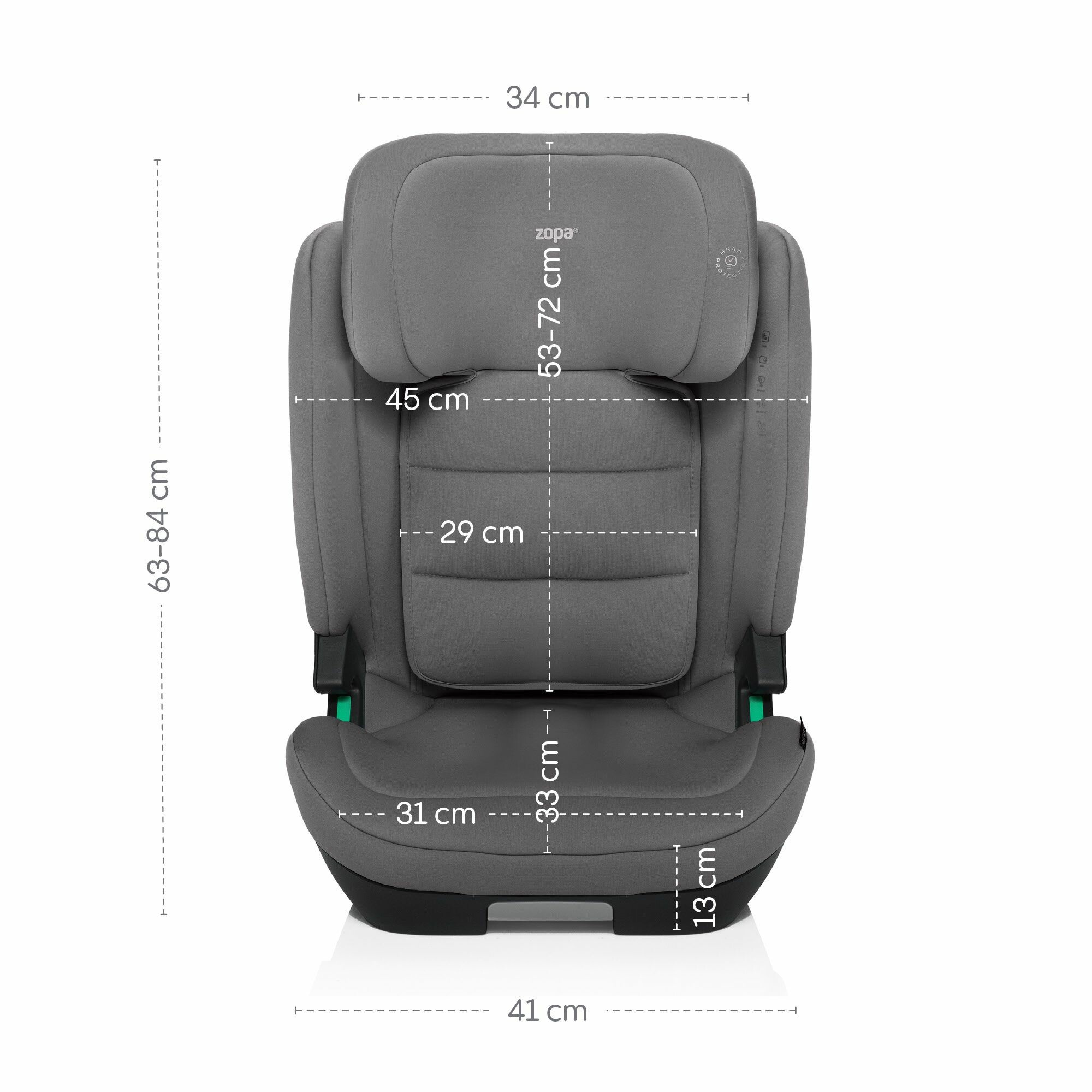 Prostorná autosedačka s měkkými potahy a možností naklonění do 4 ergonomických poloh zajistí pohodlnou cestu i při delší jízdě a během spánku. Polohování se dá jednoduše nastavit pojistkou ve přední části autosedačky. Opěrka hlavy nabízí až 10 poloh nastavení, díky tomu autosedačka roste s dítětem.