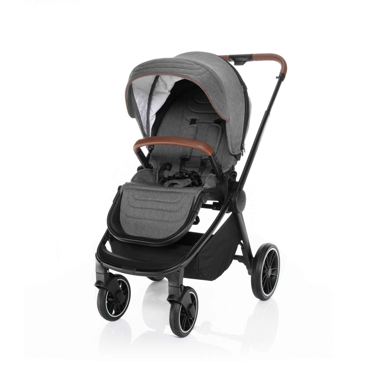 Rodiče ocení možnost nastavit si výšku rukojeti. Ta je vyrobena z ekokůže a podtrhuje tak celkový moderní design kočárku.