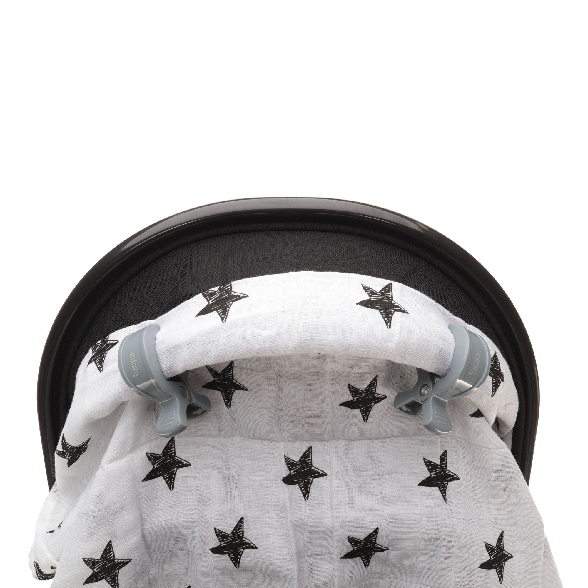 Praktický klip na kočárek nebo autosedačku, pomocí kterého snadno, rychle a pevně připevníte plenu či osušku chránící dítě před sluníčkem nebo povětrnostními vlivy.