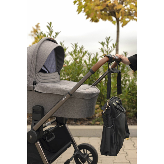 Popruh se skobou se hodí na každý typ kočárku. Snadno se instaluje pomocí suchého zipu. Díky pevné kovové skobě bude vaše taška vždy bezpečně připevněna k rukojeti.